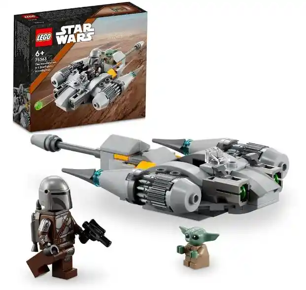 Una minifigura LEGO® del Mandaloriano con una pistola bláster y un elemento que representa una mochila propulsora, además de una figura LEGO de Grogu. El caza estelar N-1 construible de juguete cuenta con una cabina abierta para el Mandaloriano, espacio para Grogu detrás de la cabina y 2 cañones que disparan para dar paso al juego de acción. Este juego de juguete construible puede combinarse con otros sets LEGO® Star Wars™ Microfighters (a la venta por separado) para abrir las puertas a nuevas y divertidas posibilidades de juego. Este juguete de construcción LEGO® Star Wars™ de 88 piezas es perfecto como premio inesperado, regalo de cumpleaños u obsequio en fechas festivas. El caza estelar mide aproximadamente 3 cm de altura, 13 cm de longitud y 8 cm de anchura. Mételo en la mochila de tu peque, listo para jugar donde surja la ocasión. ¿Quieres proporcionarle a tu joven constructor o constructora una experiencia de construcción aún más increíble? Ahora puedes conseguirlo con la app LEGO® Builder, que incluye intuitivos modos de acercamiento y giro.