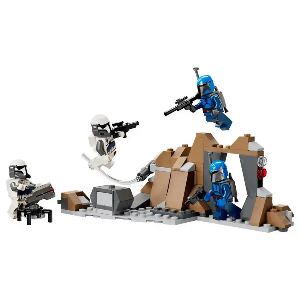 Tu peque interpretará épicas batallas aéreas con el set LEGO® Star Wars: The Mandalorian Pack de Combate: Emboscada en Mandalore (75373). Una superidea de regalo para niños, niñas y fans creativos de 6 años o más, este juguete construible les permite revivir la acción de la temporada 3 de Star Wars: The Mandalorian con 4 minifiguras LEGO coleccionables: una integrante de los Búhos Nocturnos Mandalorianos, un guerrero Mandaloriano y 2 comandos imperiales. Incluye montones de accesorios LEGO, como blásteres, pistolas bláster y mochilas propulsoras, además de un elemento transparente con un mango para que la minifigura LEGO “vuele”. Una formación rocosa con una cueva y un cañón que dispara aportan aún más posibilidades de juego. Descubre con tu peque las instrucciones digitales y las herramientas de visualización de la app LEGO Builder. La formación rocosa/cueva puede conectarse a la base Mandaloriana del set Batalla entre Paz Vizsla y Moff Gideon (75386, a la venta por separado). Pack de combate LEGO® Star Wars: The Mandalorian para niños y niñas: Revive la emboscada en Mandalore que tiene lugar en la temporada 3 de la serie de Disney+ y crea nuevas aventuras con este juego de juguetes construibles. 4 minifiguras LEGO® Star Wars™ coleccionables: Una integrante de los Búhos Nocturnos Mandalorianos y un guerrero Mandaloriano, con blásteres, y 2 comandos imperiales, con pistolas bláster, además de 4 elementos que representan mochilas propulsoras. Juguete de construcción Star Wars™ infantil: El set incluye una formación rocosa construible con una cueva, un cañón que dispara y una caja de almacenamiento que contiene un detonador térmico de juguete para vivir creativas aventuras Acción aérea con mochilas propulsoras: Coloca una minifigura LEGO® en el elemento transparente y usa el mango para hacerla “volar” por los aires. Divertida idea de regalo inspirada en el universo Star Wars™ para mayores de 6 años: Regala este juguete de construcción coleccionable a un niño, una niña o cualquier joven fan de Star Wars: The Mandalorian que tenga una mente creativa. Construcción digital interactiva: Con la app LEGO® Builder, los peques pueden acercar, girar y visualizar una versión digital de este modelo mientraslo construyen. Para construir y conectar: La formación rocosa de este set LEGO® Star Wars: The Mandalorian coleccionable puede conectarse a la base Mandaloriana del set Batalla entre Paz Vizsla y Moff Gideon (75386), a la venta por separado. Dimensiones: La formación rocosa construible de este set de 109 piezas mide aproximadamente 7 cm de altura, 17 cm de anchura y 8 cm de profundidad.