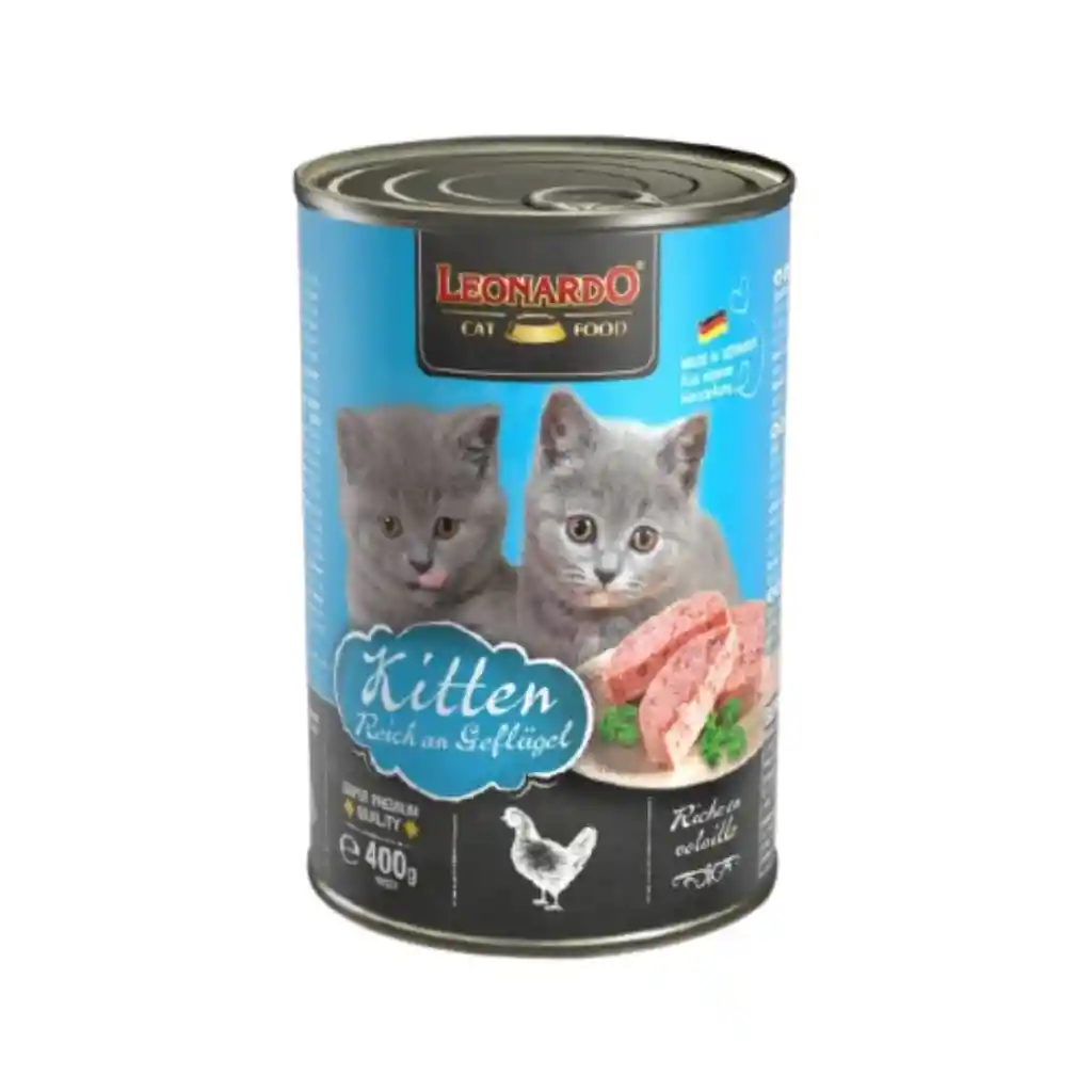 Quality Selection Conejo de LEONARDO® Es carne de alta calidad en lata, perfecto para el comienzo de la vida de tu peludito, con aves y una saludable porción de aceite de pescado para su óptimo desarrollo. También es ideal para una alimentación BARF*. Los gatos, al igual que los felinos que viven en el medio natural, son carnívoros. Este es el por qué solamente se utilizan productos cárnicos frescos. Gracias a la alta disponibilidad biológica y a la alta calidad de estos productos, su gato necesita una cantidad relativamente pequeña para satisfacer sus necesidades nutricionales diarias. LEONARDO® goza de haber sido el ganador en 2016 y 2017 del premio al producto más novedoso del año en comercios alemanes. Solo con pasión se puede transformar algo bueno en algo especial. Este entusiasmo lo comparten desde hace décadas nuestros nutricionistas, veterinarios y múltiples empleados, cuando elaboran el alimento para gatos LEONARDO® con ingredientes saludables. Movidos por esta dedicación, han encomendado a un equipo de expertos el desarrollo de un método de cocción de comida felina apto para carne fresca de procedencia local, en lugar de carne seca. La mayoría de los gatos la prefieren y a nosotros nos permite influir directamente en la calidad. Las ventajas de este producto son: Carne de Alta Calidad: Ingredientes de alta calidad, libres de colorantes, saborizantes y conservantes. BARF*: Esta lata es ideal para combinar una alimentación BARF* Fuente de Proteína: También ideal como buena fuente de proteína en dietas. Garantía de Calidad: Garantizado a partir de los mejores ingredientes con excelente sabor y palatabilidad. Además contiene proteína derivada directamente de carne apta totalmente para el consumo humano.