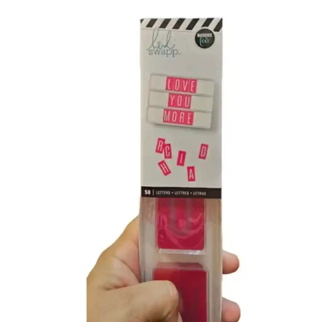 Heidi Swapp Letras para cajas luminosas (Letras transparente Fondo Rosado) Incluye 50 Letras: Ax3 Bx2 Cx2 Dx2 Ex3 Fx2 Gx2 Hx2 Ix3 Jx1 Kx1 Lx2 Mx2 Nx2 Ox3 Px2 Qx1 Rx2 Sx2 Tx2 Ux3 Vx1 Wx2 Xx1 Yx1 Zx1 Medida de cada Recuadro de Letra: 7cm de alto x 4cm de ancho