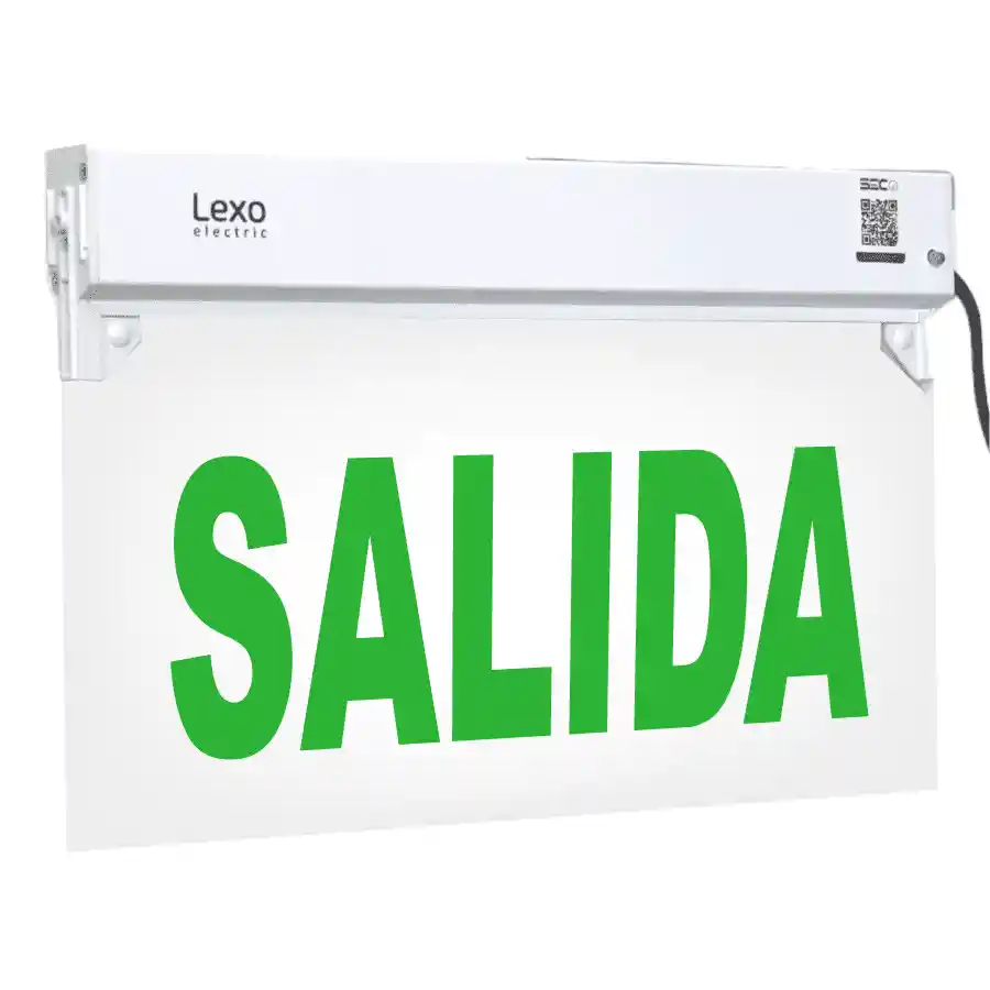 DESCRIPCIÓN Banderola de señalización emergencia LED, entrega luz de forma permanente iluminando la señalética en todo momento, ante un corte de energía, su metacrilato traslúcido con serigrafía ¨SALIDA¨ ofrece una comunicación visual que permite guiar, orientar u organizar a las personas, ante cortes de energía. Aplicaciones Instalación en Interior, pasillos, ocinas, salas, salida de escala, etc Instalación Frontal a muro 0.5mm Adosable a muro Adosable a cielo Luminaria suspendida Instalación en lugar inflamable CARACTERÍSTICAS Encendido automático en caso de corte de energía. Panel fotolumínico de acrílico (4mm) con letras serigrafiadas 5 LED de alta luminosidad. ESPECIFICACIONES Tensión: 220~240V AC Frecuencia: 50Hz Batería: Níquel Cadmio Batería: 3.6V500mAh Índice de protección: IP20 Autonomía: 6 HORAS Consumo de energía: 2.5W MAX Corriente: (A): 0.108 Factor de potencia (PF): 0.050 Salida de lumen: 2 - 4 LM Temperatura de color: 7000 - 8000K Tiempo de carga: 24 HORAS Tiempo de descarga: 120 minutos Clasificación de seguridad: II Alto: 23.5cm Ancho: 35cm Profundidad: 2.8cm Peso: 777 g