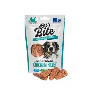 Let´s Bite Meat Snacks Chicken Fillet son unos deliciosos premios para perros muy saludables hechos con 90% carne real, proteínas libres de grasas y aminoácidos esenciales. Con arándanos y alcachofa. De calidad super premium resultarán irresistibles para los perros amantes de la carne. Ideales para entrenamiento o como gratificante premio. Ricos en proteínas. Alto valor nutricional. SIN trigo - SIN gluten - SIN OMG - SIN azúcar. Bolsita de 80 g.