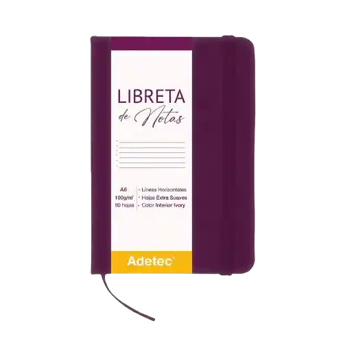 LIBRETA COSIDA A6 BURDEO CON ELÁSTICO ¡Registra tus ideas y apuntes en nuestras libretas ! Contiene 80 hojas de 100 g/m, extra suaves de color Ivory, con líneas horizontales.