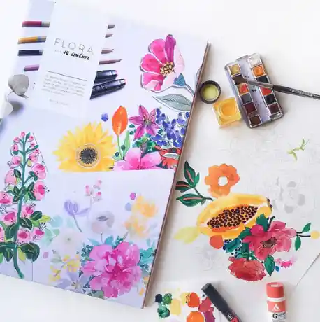 “Flora” es un libro con 24 diseños florales dibujados por Jo Jiménez. Puedes utilizarlo para colorear con técnicas mixtas como lápices de colores, plumones, acrílico y hasta acuarela –sin exceso de agua–, o usar los diseños para traspasarlos a tus proyectos textiles. Autor: Jo Jiménez Dimensiones: 42 x 30 cm. Material: 24 hojas blancas de papel dúplex de 240 gramos.