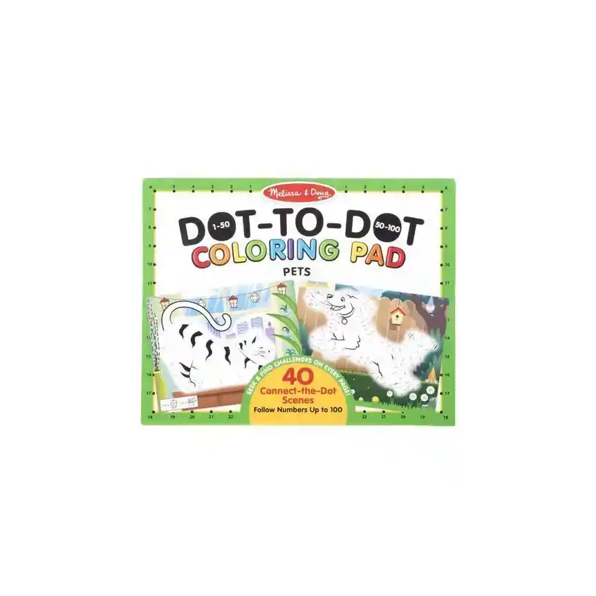 Libro Para Colorear Conecta Los Puntos 123 Pets, ¡Sigue los números para conectar los puntos y revelar 40 mascotas favoritas!. Las páginas aumentan en dificultad para que los niños puedan avanzar del 1-15 al 1-100 para descubrir el animal en la escena. Los niños de cuatro años en adelante pueden colorear las imágenes completas y aprender los nombres de los animales revelados a partir de las ilustraciones en la parte posterior del bloc. Cada página parcialmente coloreada también presenta una actividad de buscar y encontrar con más animales y equipo para el cuidado de mascotas, lo que lo convierte en una plataforma de múltiples actividades llena de diversión y oportunidades de aprendizaje. Almohadilla para colorear Jumbo Connect the Dots con mascotas favoritas y escenas de fondo detalladas. Las páginas aumentan en dificultad de 1-15 a 1-100 siga los números de menor a mayor para completar las escenas parcialmente coloreadas, luego coloree la imagen 40 páginas de papel bond de calidad, perfecto para crayones, marcadores, lápices de colores y bolígrafos. Actividad adicional de buscar y encontrar en cada página e identificación de animales en la parte posterior de la libreta.