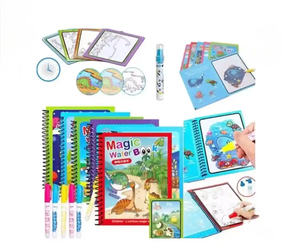 Libro con pincel que se recarga con agua para pintar infinitas veces. Color verde o azul al azar