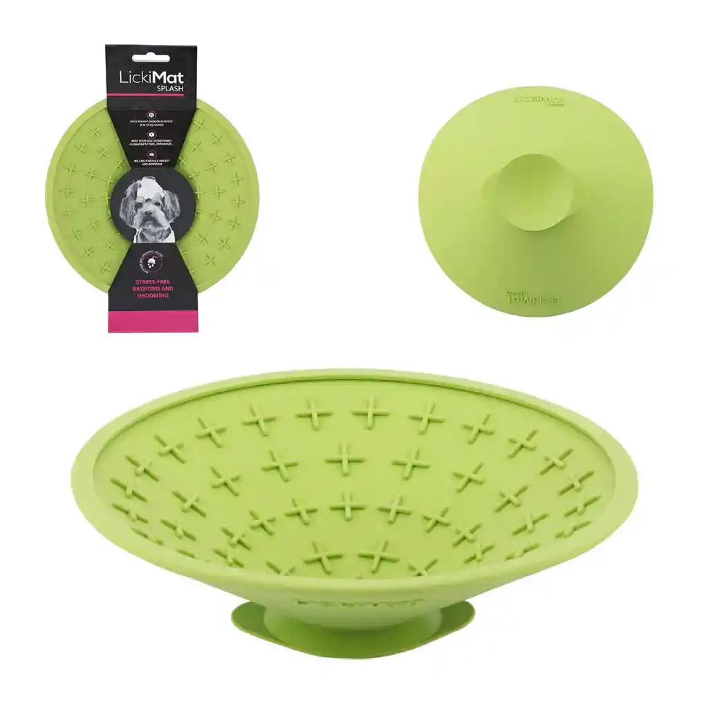 LickiMat Splash es el distractor perfecto para el aseo y el baño. También perfecto para superficies verticales. El Splash es el único LickiMat con ventosa. Rocíe la superficie con agua antes de aplicar para obtener la máxima resistencia.
