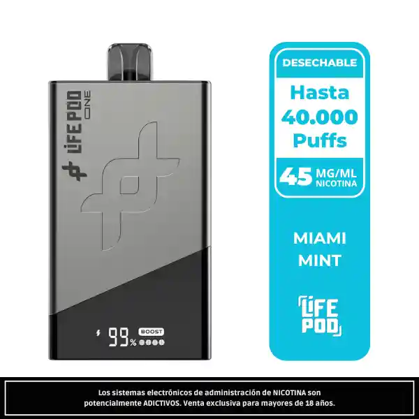 El Life Pod One Miami Mint 40 000 Puffs ofrece un frescor puro y sostenido en cada calada. Con 4,5 % de nicotina, modo Boost ICE / Boost Flavor y pantalla digital integrada, este pod desechable recargable redefine la experiencia mentolada con hasta 40 000 puffs de sabor intenso y limpio.