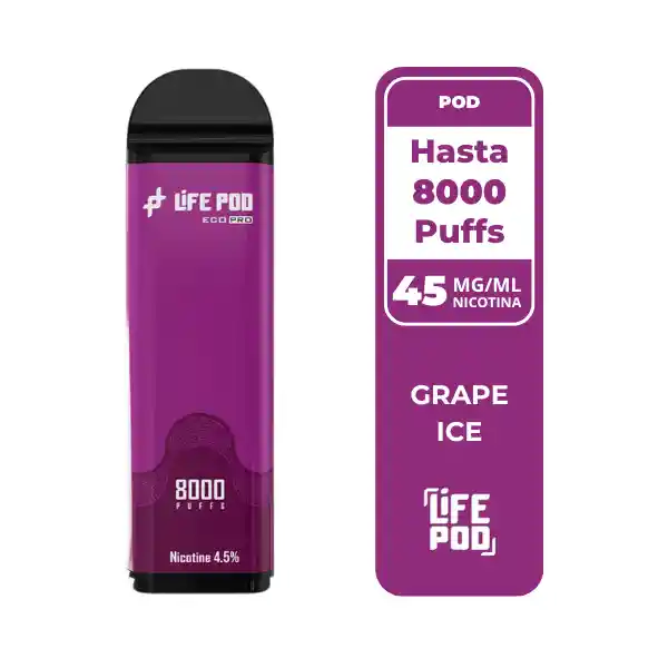 El Life Pod Recarga Grape ICE 8 000 Puffs combina el sabor intenso de la uva madura con un toque helado refrescante. Con 4,5 % de nicotina y hasta 8 000 caladas, ofrece una experiencia frutal dulce, fresca y perfectamente equilibrada. Compatible con la Batería Life Pod Eco Pro.