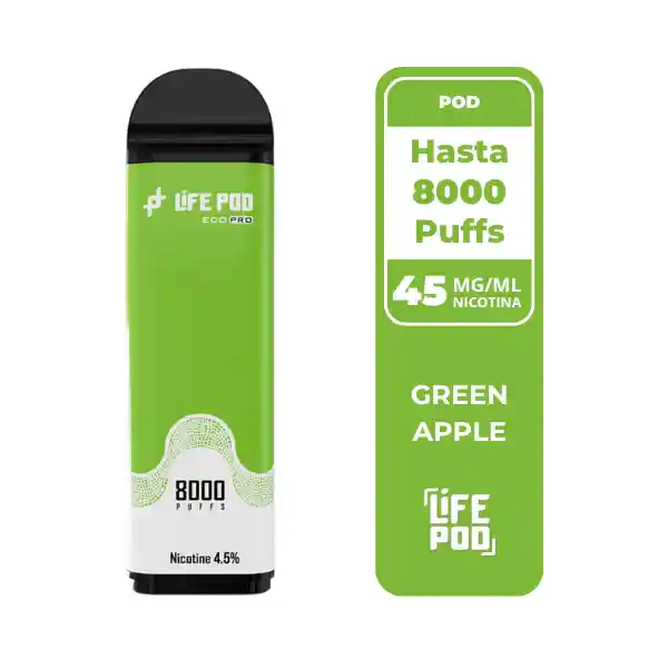 El Life Pod Recarga Green Apple 8 000 Puffs ofrece el sabor fresco y ácido de la manzana verde en cada calada. Con 4,5 % de nicotina y hasta 8 000 puffs, entrega una experiencia frutal nítida, jugosa y refrescante. Compatible con la Batería Life Pod Eco Pro.