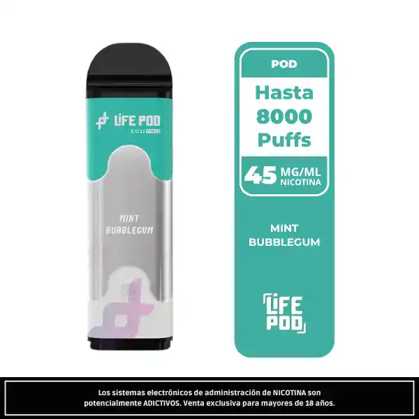 Combina el frescor de la menta con el dulzor clásico del bubblegum. Con 4,5 % de nicotina y hasta 8 000 caladas, ofrece una experiencia equilibrada entre frescura y dulzura. Compatible con la Batería Life Pod Eco Pro.
