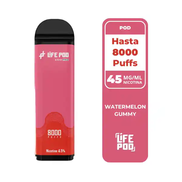 El Life Pod Recarga Watermelon Gummy 8 000 Puffs combina el sabor jugoso de la sandía con el dulzor del caramelo tipo goma. Con 4,5 % de nicotina y hasta 8 000 caladas, ofrece una experiencia frutal, suave y adictivamente dulce. Compatible con la Batería Life Pod Eco Pro.