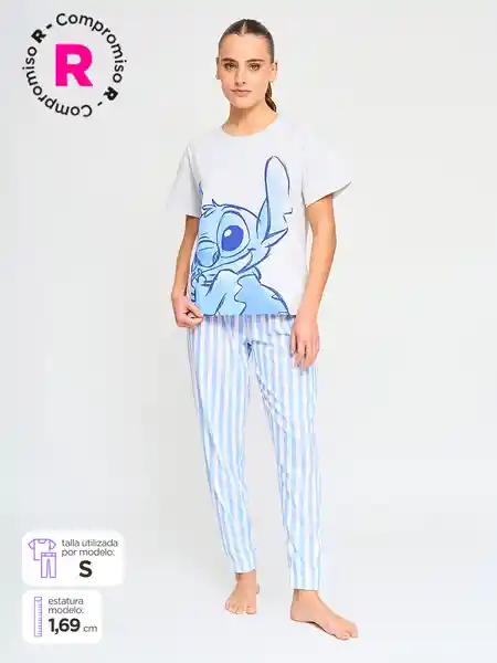 Lilo & Stitch Pijama Manga Corta Joger Stitch Gris Talla L V26