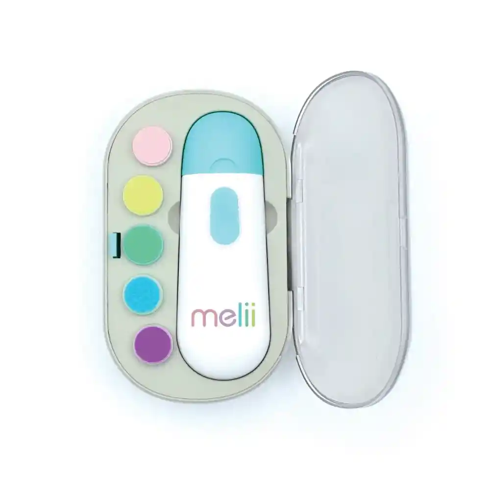 Seguro y suave para bebés Mantener las uñas de tu bebé cortas y suaves nunca fue tan fácil y seguro como con el Limador de uñas eléctrico Melii. Este práctico dispositivo está diseñado para cuidar las delicadas uñas de los más pequeños, evitando cortes accidentales y raspaduras. Con 2 velocidades y 5 cabezales intercambiables, adapta el limado según la edad y el grosor de las uñas, además cuenta con una luz led integrada que ofrece visibilidad adicional o puede usarse como luz de distracción durante el proceso. Su diseño ergonómico y silencioso permite usarlo incluso mientras el bebé duerme, haciendo de esta tarea un momento tranquilo y sin estrés. Un accesorio imprescindible para la rutina de cuidado infantil, que aporta seguridad y comodidad a los padres y bienestar a los niños. Tips de uso Limpiar el limador antes y después de cada uso con un paño seco o ligeramente húmedo. Seleccionar el cabezal adecuado según la edad del bebé y la velocidad deseada. Limar las uñas con movimientos suaves y circulares, evitando presionar demasiado. Usar en un ambiente iluminado para mayor precisión. Mantener fuera del alcance de los niños cuando no esté en uso. Ideal para recién nacidos, bebés y niños pequeños. Especificaciones Material: Plástico ABS y motor eléctrico seguro. Alimentación: 2 pilas AA (no incluidas). Velocidades: 2 niveles ajustables según grosor de uñas. Incluye: Limador eléctrico, 5 cabezales de lima intercambiables: lima rosa (0-3 meses), lima verde lima (3-6 meses), lima verde menta (6-12 meses), lima azul (12 meses+) y lima morada (2 años+) y manual de usuario. Marca: Melii Origen: Canadá.