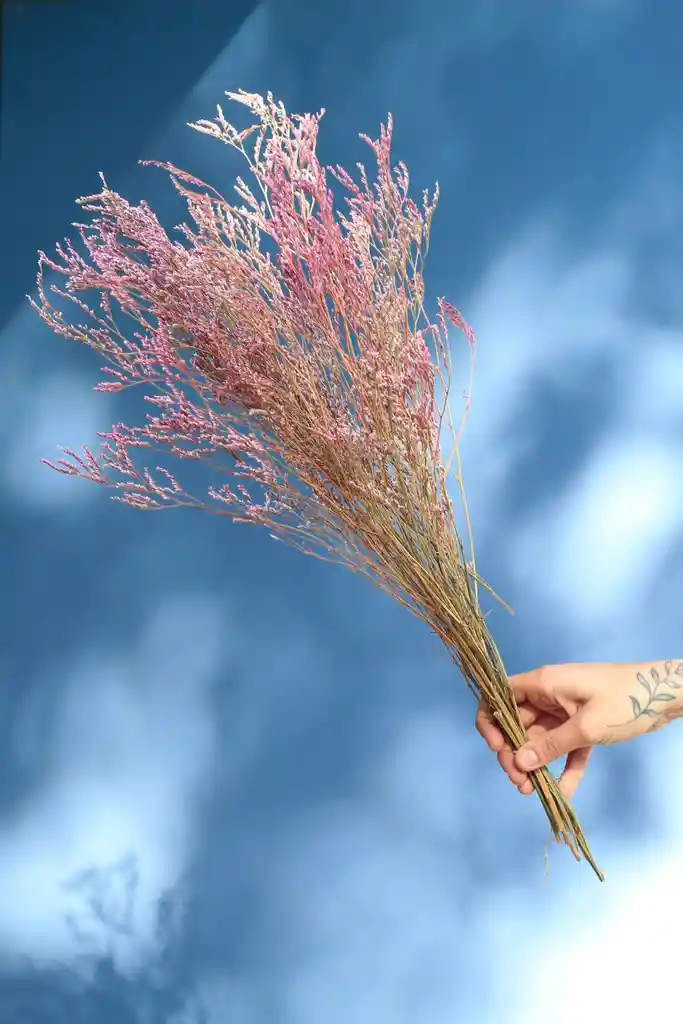 Incluye un pequeño Ramo de Limonium seco en color Rosado. Los tonos pueden variar levemente entre si. Largo aproximado 40 cms. Todos nuestros productos secos y preservados han sido cuidadosamente seleccionados para ti. Nuestros productos pueden durar harto tiempo; evitando el sol directo, cambios de temperaturas muy abruptos, exposición a espacios húmedos, contacto directo con el agua, inadecuada manipulación, entre otros.