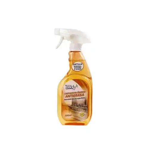 tu solución ideal para combatir la grasa en cualquier superficie de tu hogar. Con su práctico dispositivo de gatillo, este limpiador facilita la aplicación y te permite limpiar de manera rápida y efectiva. Características Destacadas: Fórmula potente: Diseñada para eliminar la grasa más difícil, ideal para cocinas y superficies en contacto con alimentos. Fácil de usar: Solo rocía, deja actuar y limpia con un paño. ¡Es así de sencillo! Versatilidad: Perfecto para usar en acero inoxidable, cerámica y más, asegurando un acabado brillante sin esfuerzo. Con el Limpiador Antigrasa Gatillo Teddy, haz que la limpieza de tu hogar sea una tarea rápida y placentera. ¡Mantén cada rincón impecable y libre de grasa!