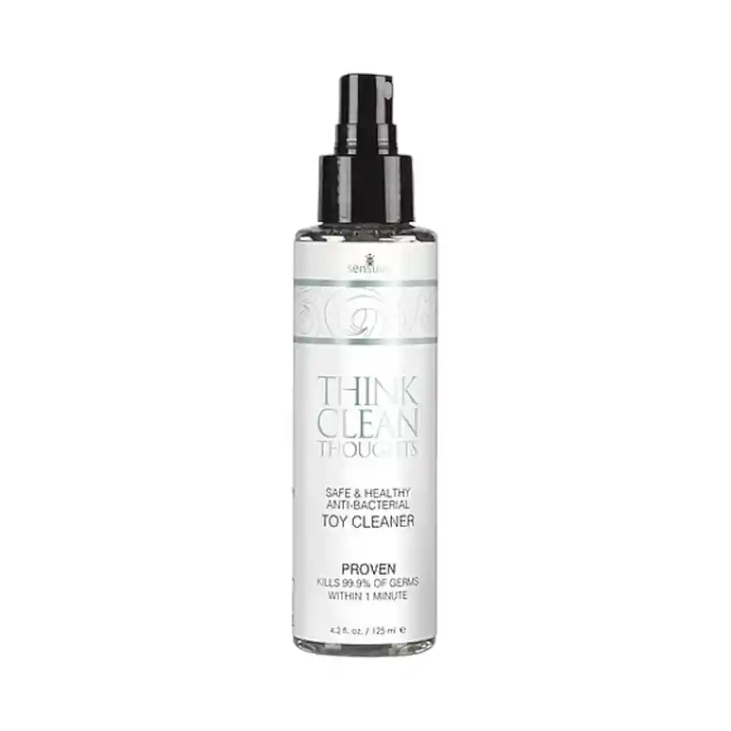 Mantenga sus productos de placer limpios y su cuerpo seguro! Think Clean es un spray de limpieza antibacteriano rápido y fácil de usar que contiene ingredientes antimicrobianos activos que han demostrado matar el 99,9% de todos los gérmenes, y es lo suficientemente suave como para no causar irritación al tejido delicado. Características: Contenido: 125 ml. Apto: Caucho - Silicona - Látex - vidrio - Acero Inoxidable. Elaborado con ingredientes saludables como: agua, extracto de hamamelis, extracto de semilla de uva, naranja dulce y otros verdaderos aceites esenciales. Sin parabenos, petroquímicos o glicerina. Modo de uso: Rocíe directamente sobre los productos de placer tanto antes como después. Limpie el exceso de líquido. Importante: No se pretende como una crema hidratante personal (no utilizar internamente).