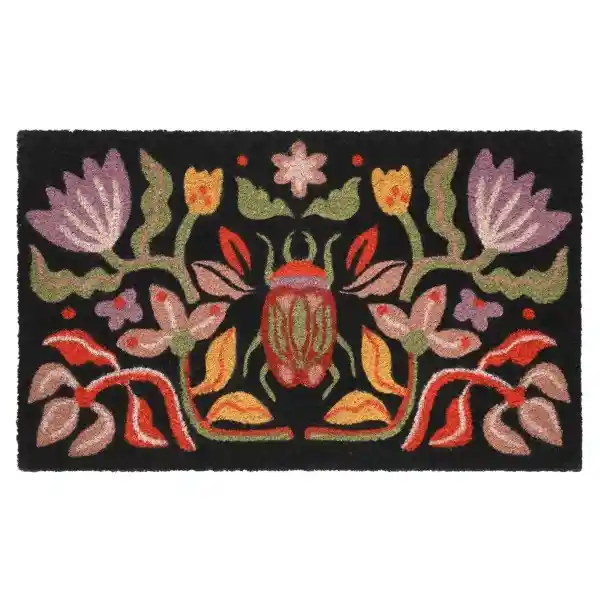 Con Forma de Semicírculo de Fibra de Coco Estampado y Base de Pvc. Tiene un Tamaño de 68 x 35 cm.