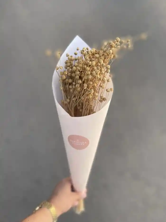 Incluye un ramo de Linaza seca. Largo aproximado 35 cms. Todos nuestros productos secos y preservados han sido cuidadosamente seleccionados e importados desde Holanda para ti. Además todos han sido cultivados, cosechados y producidos de manera manual para garantizar la mejor calidad y color, respetando las normativas eco-sustentables europeas. Nuestros productos pueden durar varios años si se cuidan de la manera correcta evitando el sol directo, cambios de temperaturas muy abruptos, exposición a espacios húmedos, contacto directo con el agua, inadecuada manipulación, entre otros.