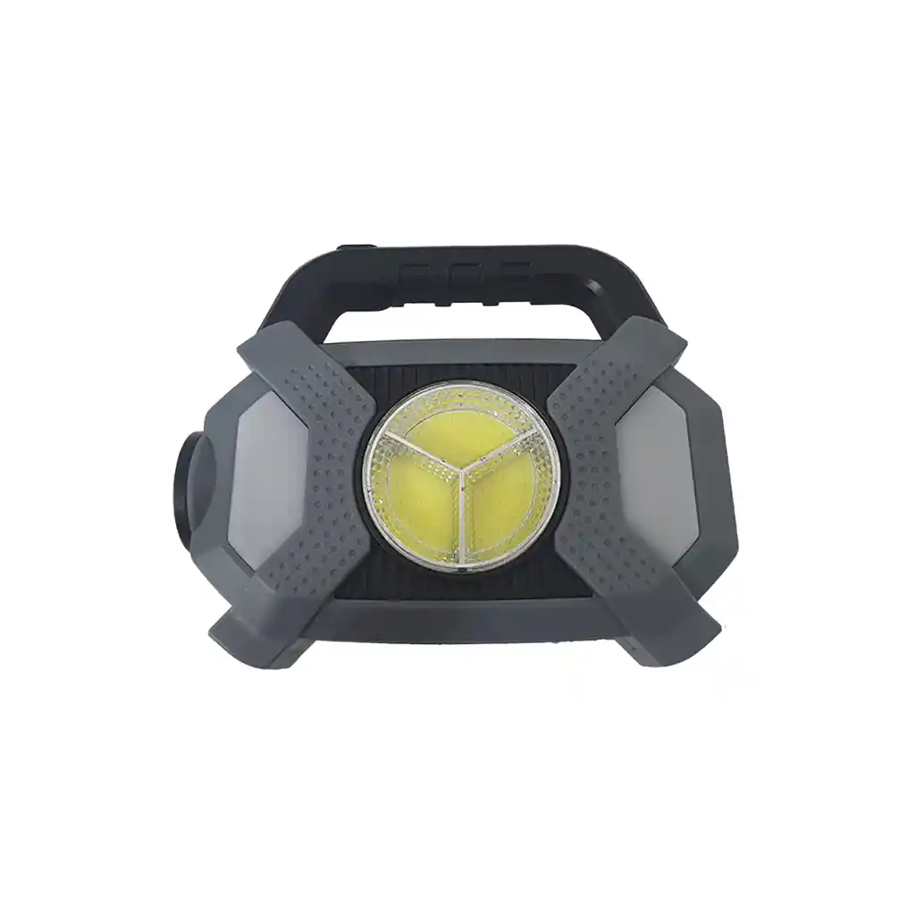 Potente linterna multi propósito, de plástico, disponible en colores negro con gris, verde o azul. Ideal para camping, trabajos en casa o como luz de apoyo. Se puede cargar con luz solar o utilizando un cable USB (incluido), tiene 3 modos de iluminación LED con una potencia total de 20W, con su carga completa puede estar encendida entre 5 y 8 hrs, demora entre 5 y 6 hrs para cargarse completamente.