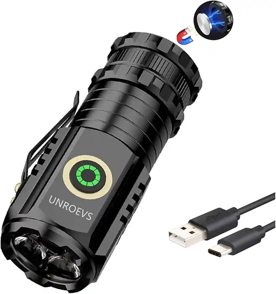 Flujo luminoso máximo: 2000 lúmenes. Alcance: 300m. Interruptor: Interruptor de control central. Modo de engranaje: alto-medio-bajo-doble clic para entrar en modo Turbo-SOS Tiempo máximo de iluminación: 8H Especificación del puerto de carga: Carga rápida tipo C (pantalla verde cuando está completamente cargada, pantalla de baja potencia en rojo) Anticaída: 1 metro. Peso neto: 85g Material: aleación de aluminio Acerca de las baterías: usando baterías 18350 (800Mah) Tamaño del producto: 80mm * 30mm Modelo de cuentas de lámpara: 3 * P35 cuentas de lámpara súper brillantes 5 modos de iluminación Luz fuerte-Luz media-Luz débil-Doble clic para entrar en los modos TURBO-SOS Luz fuerte: 1800LM Zhongguang: 1000LM Luz baja: 250LM Haga doble clic para entrar en los modos TURBO: 2000LM SOS (mantén pulsado durante 3 segundos en cualquier engranaje para entrar en modo SOS)