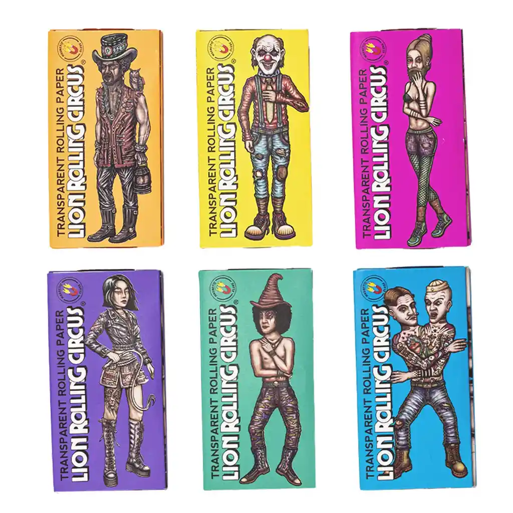 Lion Rolling Circus Papelillos Celulosa 1 1/4 fabricados en celulosa transparente, diseñados para un armado más preciso y visual. Su material permite ver el interior con claridad y ofrece una combustión lenta y uniforme. Tamaño 1 1/4 ideal para formato personal. Cada librillo incluye 50 papelillos y el diseño es aleatorio según disponibilidad.