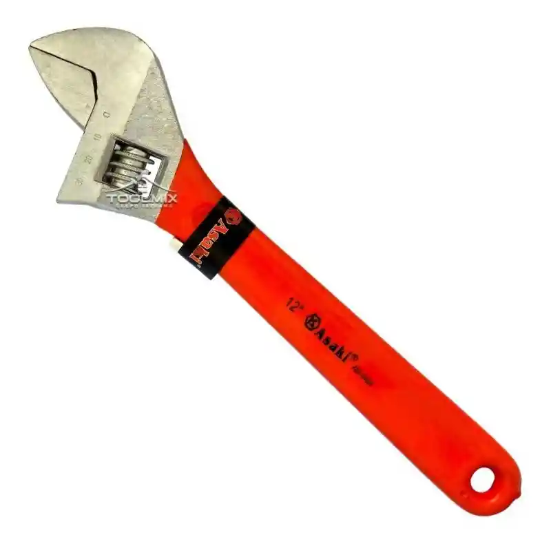 Llave Francesa Ajustable 12 Pulgadas 305mm Asaki Profesional INCLUYE: * 1 Llave francesa ajustable de 12 pulgadas (305 mm) * CARACTERISTICAS: – Dimensiones: Ancho: 80mm Alto: 20mm Largo: 305mm – Apertura máxima: 34mm – Esta llave está fabricada de acero al cromo vanadio con acabado cromado y tratado térmicamente para una máxima resistencia y durabilidad. – Su asa está sumergida en vinilo para una mayor comodidad, y el engranaje permite un funcionamiento suave y preciso. – Posee escalas de medición en cada lado de la llave para ajustes rápidos y fáciles (de 0 a 30 mm). – Su mandíbula extra ancha hace que la llave sea ideal para una mayor variedad de tamaños de tuercas/pernos, ya que se adapta con facilidad a la mayoría de los elementos de sujeción. – Esta llave es ideal para trabajos de gasfitería, plomería, reparación de automóviles, bicicletas y motocicletas, ensamblaje de muebles, y muchas otras aplicaciones profesionales o del hogar.