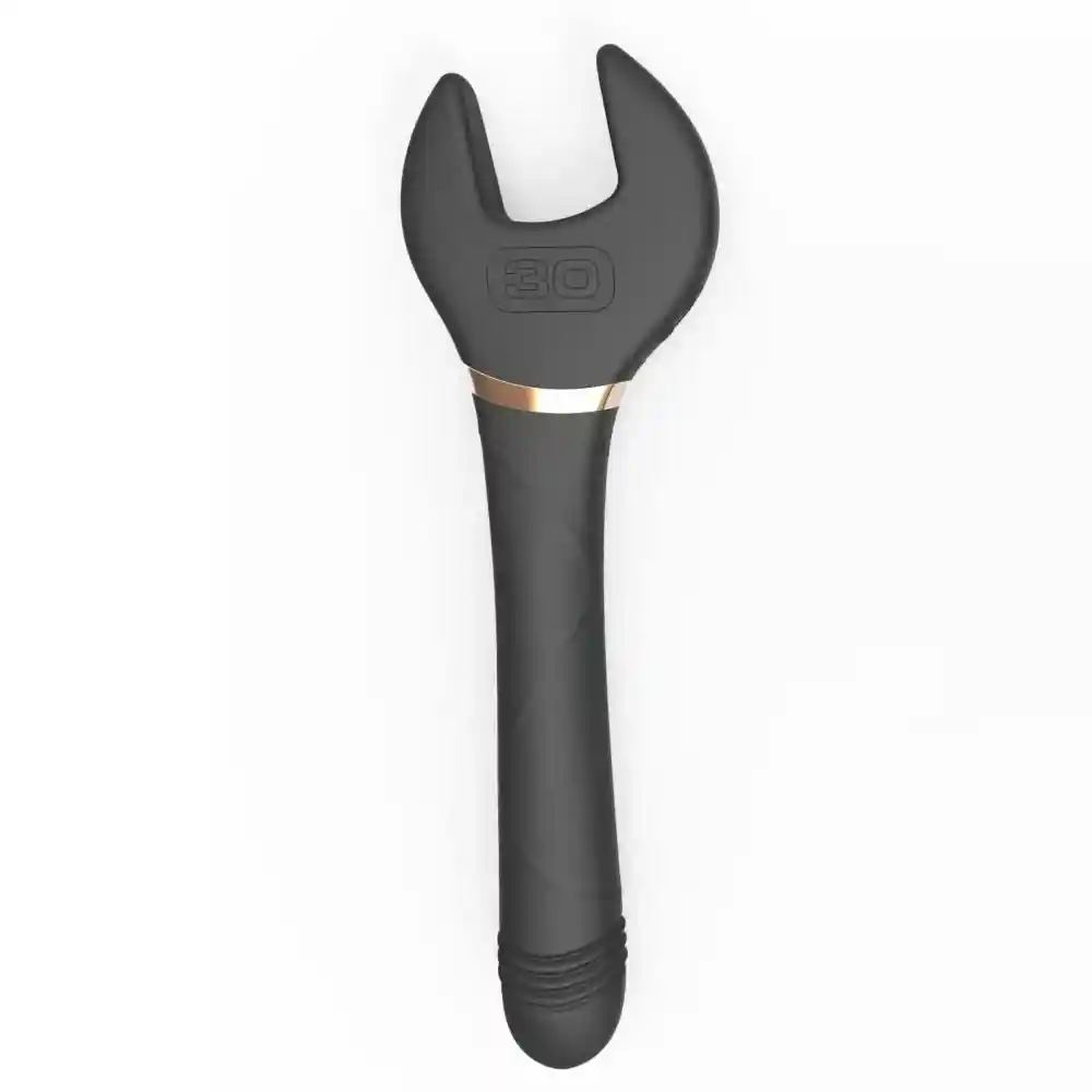 ESPECIFICACIONES \n \nSólo disponible en NEGRO con DORADO. \n \nMaterial: está hecha de silicona y ABS de alta calidad, lo que garantiza una experiencia segura y cómoda. \n \nResistente al agua: es resistente al agua IPX6, lo que le permite disfrutar de sus funciones estimulantes en el baño o la ducha sin preocupaciones. \n \nForma de Herramienta: presenta una forma de llave única, que agrega un elemento emocionante a sus momentos íntimos. \n \nFunción dual: Este versátil vibrador ofrece dos tipos de estimulación. El primer modo combina acciones de vibración y apriete, proporcionando un placer intenso. El segundo modo combina movimientos de azotes, vibraciones y empujes para un tipo diferente de experiencia sensual. \n \nMúltiples modos: puedes explorar una variedad de sensaciones, lo que le permite personalizar su placer según sus deseos. \n \nTiempo de carga y funcionamiento: requiere un tiempo de carga de aproximadamente 150 minutos. Una vez completamente cargado, puede funcionar durante más de 60 minutos, lo que garantiza un tiempo de reproducción prolongado. \n \nFuncionamiento silencioso: funciona a un nivel de ruido inferior a 60 decibelios (dB), lo que garantiza una experiencia discreta y privada. \n \nPlacer mejorado: con sus diseños únicos, pulsaciones y vibraciones sensuales, está diseñado para aumentar el placer y ofrecer una experiencia inolvidable. Es una adición imprescindible a tu colección de vibradores. \n \n
