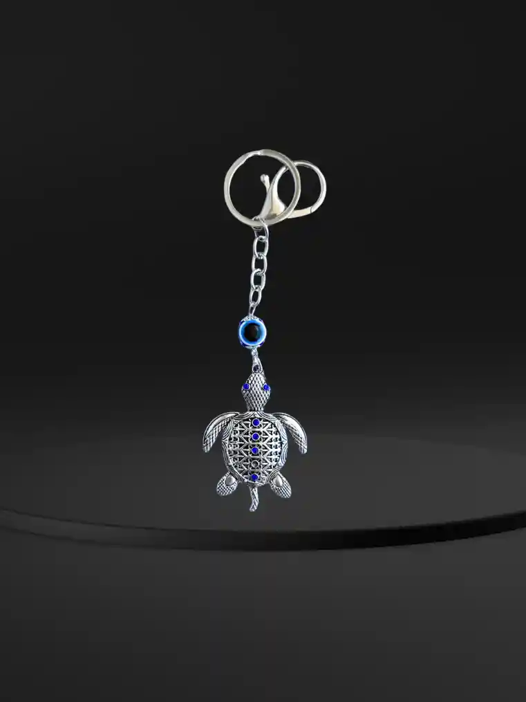 Protege y decora tus llaves con este Llavero Plateado de Tortuga, adornado con un Ojo Turco. Perfecto como regalo o accesorio personal, combina simbolismo, elegancia y estilo en cualquier ocasión especial.
