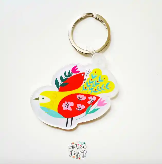 Llavero de acrílico diseño Pajarito Puedes usarlo con tus llaves, pero también como accesorio decorativo en cualquier cierre; como estuches, cosmetiqueros, mochilas o lanyard. Medidas: 60 mm x 50 mm (medida no incluye tamaño con argolla) * Antes de usar, debes retirar la protección de plástico!