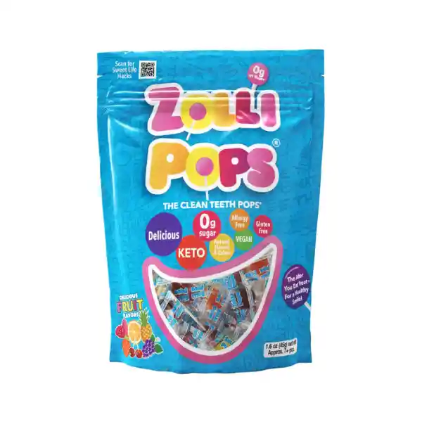 Lollipops con sabores frutales surtidos perfectos para usar después de colaciones escolares, meriendas o como premio saludable. Dulces diseñados para proteger la salud bucal, neutraliza el ácido y fortalece los dientes naturalmente, además NO contiene AZUCAR. 0g de azúcar 0g de carbohidratos netos Sin gluten Vegano Keto Ingredientes sin OMGO Sin colorantes artificiales Sin soya Sin lácteos Sabores naturales ¿ Por qué son beneficiosos para la Salud dental? Xilitol: Ingrediente activo que reduce la placa bacteriana y neutraliza los ácidos que causan caries. pH neutro: Ayuda a equilibrar el pH bucal después de las comidas. Sin azúcar y sin edulcorantes artificiales: No alimenta las bacterias orales como lo hacen los dulces comunes. Estimula la saliva: Clave para remineralizar los dientes naturalmente. Ingredientes: Jarabe de Isomalt , eritritol, ácido cítrico, sabores naturales, colorantes naturales (extracto de extracto de annato, cúrcuma, jugo de raíz de remolacha roja, espirulina, jugo de arándano), naranja, stevia.