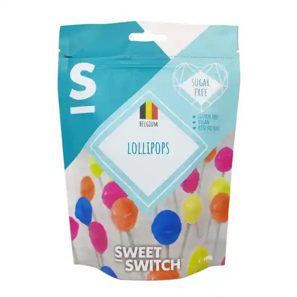 12 lollipops sin azúcar, sin gluten, libre de GMO. Endulzados con mix de stevia, isomalto y sucralosa.
