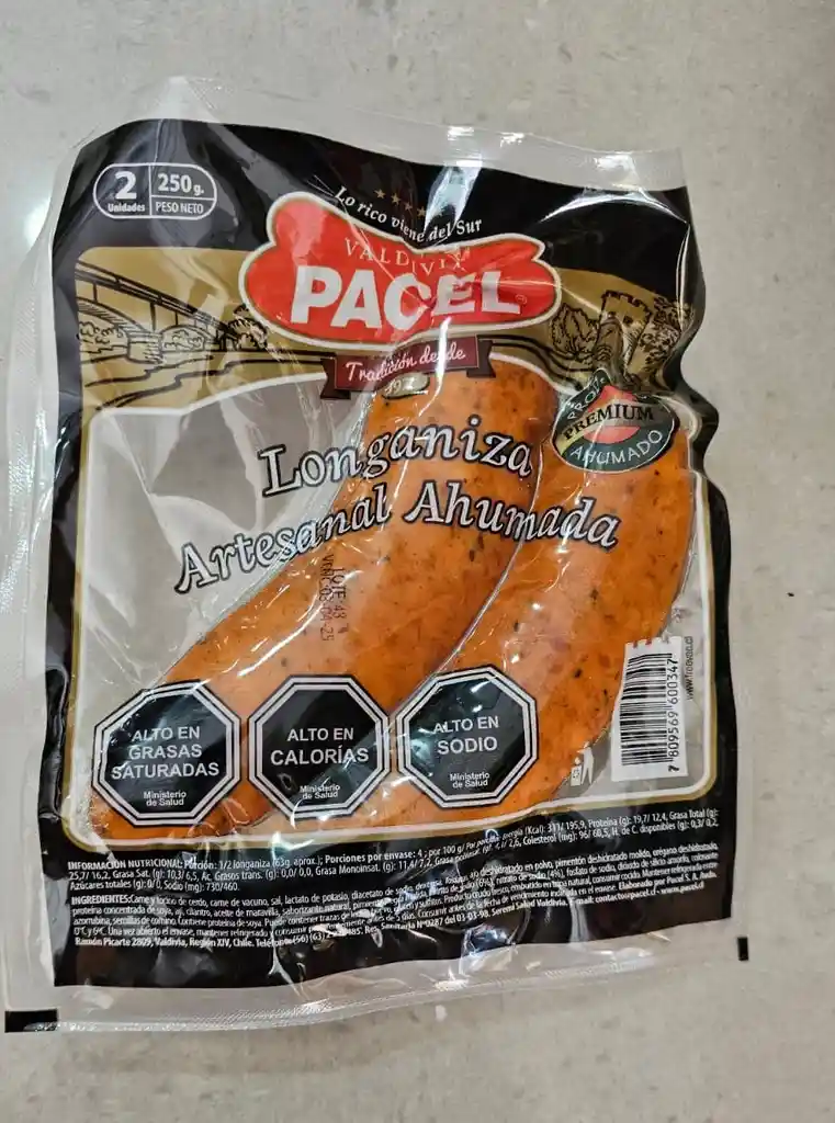 Longaniza artesanal ahumada premium de Valdivia. Paquete de 250 gr.