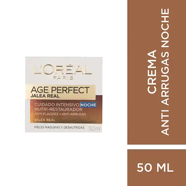 Crema Noche Age Perfect Jalea Real de L'Oreal Paris ha Sido Elaborada Con Pro-Calcium y Jalea Real Para Reforzar la Barrera Cutánea y Que la Piel Recobre su Consistencia. Además de su Alto Concentrado de Nutrientes Vitales Para Nutrir la Epidermis, Logrando Una Disminución de Arrugas en el Rostro. Ya no Tendrás Que Preocuparte de Las Arrugas, Ahora Con Jalea Real Noche Podrás Lucir Una Piel Suave y Confortable Desde la Primera Aplicación.