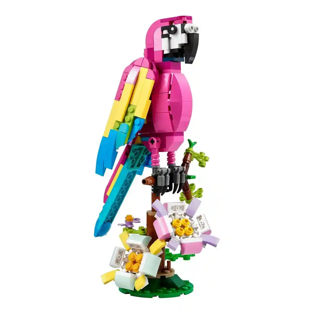 Juguete niño. Los pequeños constructores y los apasionados amantes de los animales a partir de 7 años podrán internarse en la selva tropical para vivir emocionantes historias con el set de construcción LEGO® Creator 3en1 Loro Rosa Exótico (31144). Contiene un loro en vivos colores rosa y azul que puede girar totalmente el cuerpo posado en la rama de un árbol y, además, mover las alas y la cola. Juguetes 3en1 para poner en marcha la diversión creativa Los niños tienen la oportunidad de dar forma a 3 animales exóticos de juguete con este fantástico set LEGO 3en1. Pueden construir un loro de brillante plumaje sobre la rama de un árbol y, después, convertirlo en un pez juguetón que nada por el fondo del mar o transformarlo en una traviesa rana que mueve las patas. Una divertida experiencia digital para fans de LEGO Descarga la app LEGO Builder y explora con tu peque una nueva y divertida manera de construir que le permite acercar y girar sus modelos en 3D, guardar sets y controlar su avance. • 3 exóticos animales de juguete en 1: Los peques a partir de 7 años se lo pasarán genial explorando la selva tropical con el loro, el pez o la rana del set LEGO® Creator 3en1 Loro Rosa Exótico (31144). • Infinitas posibilidades de juego: Los amantes de los animales y la naturaleza podrán interpretar diferentes historias con un loro posado en un árbol, un pez que nada por el fondo del mar y una juguetona rana. • Modelos articulados: El loro de vívidos colores rosa y azul puede girar sobre la rama y mover las alas y la cola; el pez puede levantar las aletas y moverse hacia arriba y hacia abajo; y la rana cuenta con patas articuladas. • Un proyecto sencillo: Este set de 253 piezas proporcionará a los niños y las niñas a partir de 7 años una gratificante experiencia de construcción y juego, y es perfecto como recompensa para amantes de los animales y la naturaleza. • Pieza de exposición: El loro de juguete mide aproximadamente 22 cm de altura, 11 cm de longitud y 12 cm de anchura; los peques pueden exponerlo con orgullo en su habitación hasta la siguiente sesión de juego. • Más diversión 3en1: No te pierdas otros sets de la gama LEGO® Creator 3en1, como Lanzadera Espacial (31134), Furgoneta Playera (31138) y Casa Confortable (31139). • Una práctica ayuda: Descubre las intuitivas instrucciones de construcción disponibles en la app LEGO® Builder, donde los niños podrán acercar y girar modelos en 3D, controlar su avance y guardar sets a medida que desarrollan nuevas habilidades. • Primera calidad: Desde hace más de 6 décadas, los ladrillos LEGO® se fabrican con la garantía de que van a conectarse una y otra vez, sin excepción. • Seguridad acreditada: Los ladrillos de construcción LEGO® satisfacen estrictos estándares mundiales de seguridad.