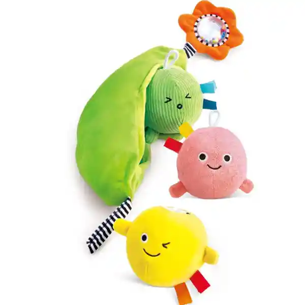 Deleita a tu bebé con los amigos de Pea Pod, un juguete sensorial diseñado para despertar la curiosidad y el desarrollo. Con 3 suaves guisantes con texturas y sonidos únicos, estimula el agarre, la agitación y la exploración. Los colores brillantes y las adorables caritas cautivan y encantan, mientras que la vaina con clip lo convierte en el compañero de viaje perfecto para una diversión relajante y estimulante sobre la marcha. Cantidad de piezas: 1 pieza Material: Tela País Marca: Alemania Edad: Desde los 6 meses
