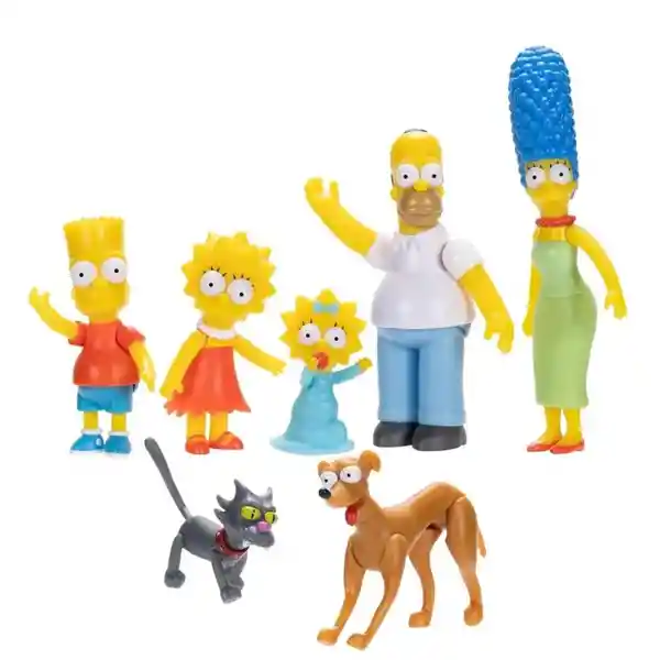El paquete múltiple de la familia Simpson presenta a toda la familia Simpson: Homer, Marge, Bart, Lisa y Maggie junto con Santa’s Little Helper y Snowball II. POSEABLE: Cada figura a escala de 2,5” cuenta con múltiples puntos de articulación para poses y juegos dinámicos. PAQUETE VARIEDAD: Compatible con todos los juegos y accesorios de diorama de Los Simpson de JAKKS para un juego divertido e inmersivo. Colecciónalos todos: Colecciona toda la gama de figuras y accesorios inspirados en Los Simpson con este paquete múltiple familiar a escala de 2,5″ de JAKKS Pacific. Perfecto para cualquier fan o coleccionista de Los Simpson. Descripción Inspirados en la icónica serie animada Los Simpson, vienen los juguetes y coleccionables con licencia oficial de JAKKS Pacific. Sumérgete en Springfield con el paquete múltiple familiar a escala de 2,5″ que incluye a toda la familia Simpson. Homer, Marge, Bart, Lisa y Maggie están detallados para combinar con su apariencia animada y cuentan con múltiples puntos de articulación para posar y jugar. Este paquete múltiple también incluye las mascotas de la familia: Santa’s Little Helper y Snowball II. Perfectas para fanáticos y coleccionistas, estas figuras a escala de 2,5 pulgadas tienen detalles extraordinarios, características divertidas y atractivas y combinan muy bien con cualquier juego de diorama. Colecciona toda la gama de juguetes y objetos coleccionables de Los Simpson de JAKKS Pacific. Para mayores de 4 años. Especificaciones Dimensiones (total): 3,78 pulgadas (alto) x 1,34 pulgadas (ancho) x 0,96 pulgadas (profundidad) Peso: 0,41 libras Edad sugerida: 4 años en adelante Número de figuras: 7 Tema de muñecas: animación, televisión y películas. Advertencias de peligro de asfixia de la CPSC: Choking_hazard_small_parts Incluye: Figuras Material: Plástico Batería: No se utiliza batería