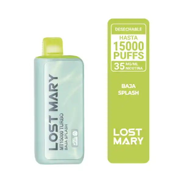 Lost Mary Baja Splash 15.000 Puffs mezcla lima, limón, naranja y un toque de menta. Con pantalla digita, modo Turbo y hasta 15.000 caladas de sabor cítrico explosivo.