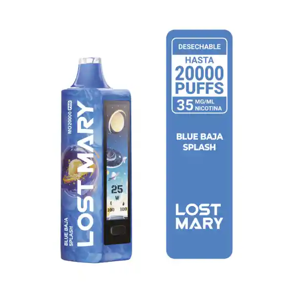 Lost Mary Blue Baja Splash 20.000 Puffs mezcla arándanos, lima y menta en un vape potente. ¡Pantalla digital, modo Turbo y hasta 20.000 caladas de frescura intensa!