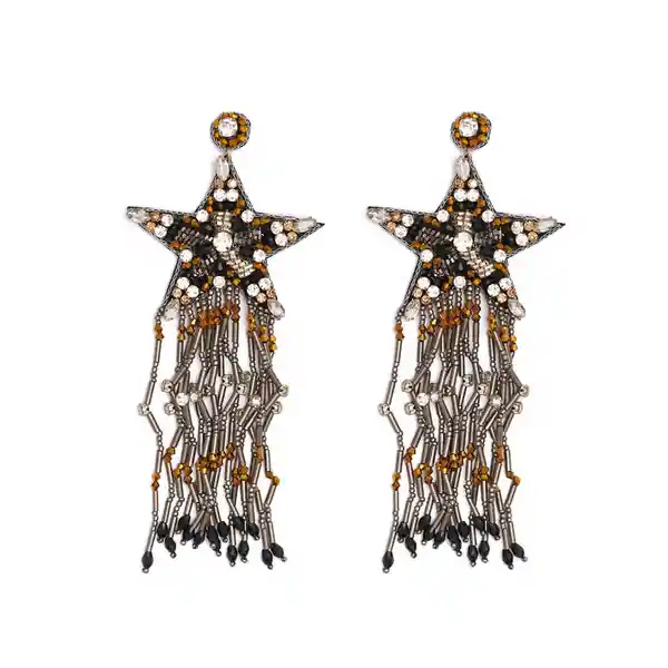 Aros Con Diseño de Estrella Con Superficie de Variadas Mostacillas y Brillos. de la Estrella, Cuelgan Largas Cadenas de Mostacillas. Cuentan Con Cierre a Presión.