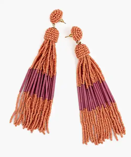 Par. Aros Largos Con Pompón de Mostacillas Rosadas y Moradas.