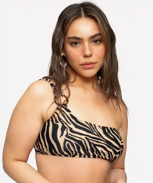 Diseño Brown Zebra Con Escote en un Hombro y Amarras Para Ajustar. Tiene Almohadillas Removibles.