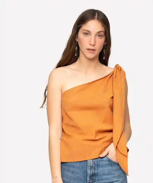 Blusa Color Terracota Con Amarras en un Hombro.