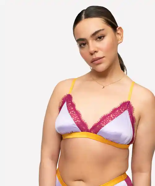 Bralette Triángulo Color Lila Con Amarillo y Encaje.