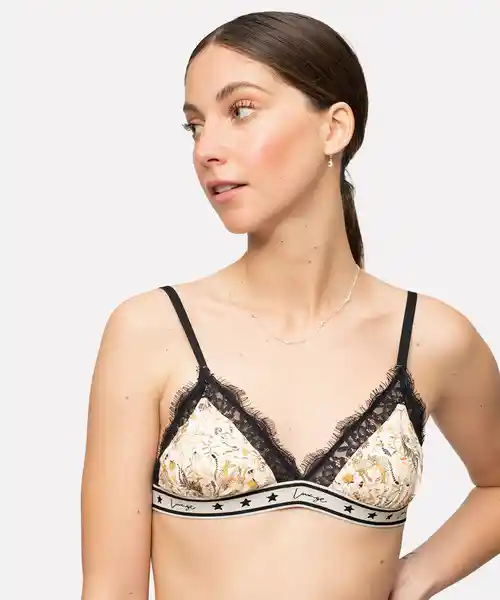 Bralette Triángulo Con Diseño Safari Nude y Encaje Negro.