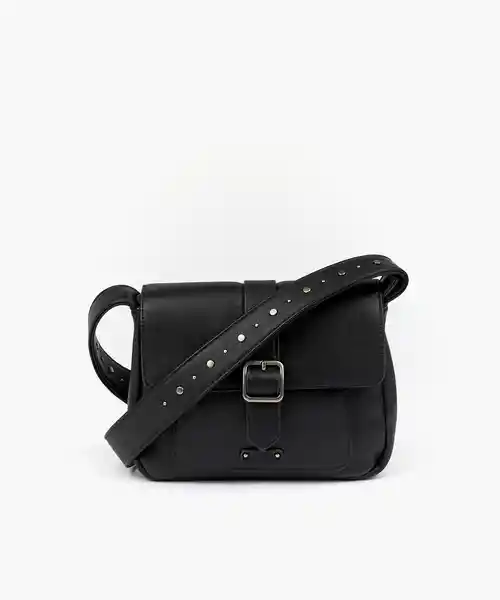Cruzado Color Negro. Abre Con Botón. El Bolsillo Principal es Con Cierre. En el Interior Tiene un Bolsillo Con Cierre. En la Parte Frontal Tiene un Bolsillo Abierto.