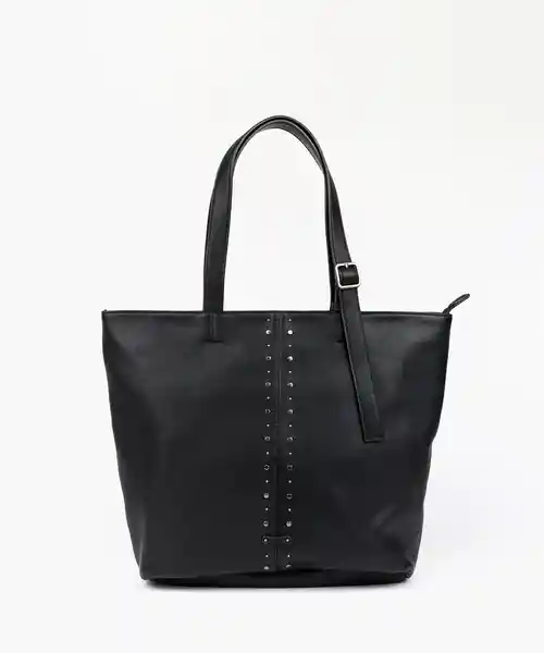 Cartera Color Negro Con Tachas Verticales. El Bolsillo Principal es Con Cierre. En el Interior Tiene un Bolsillo Con Cierre.