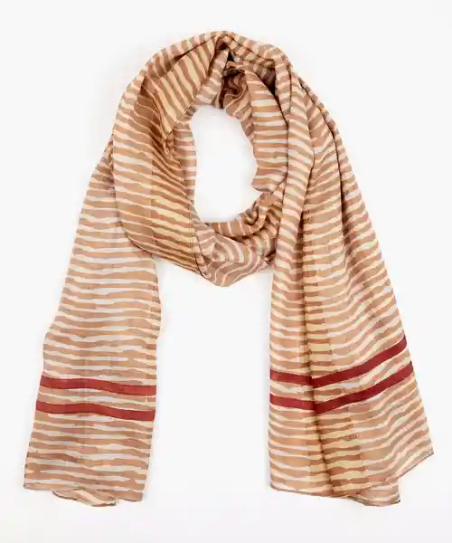 Estola Con Print de Cebra en Color Beige y Líneas Burdeo a lo Ancho.