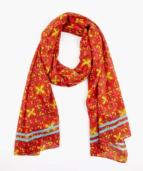 Estola de Flores Naranjo Con Dos Líneas Celeste.