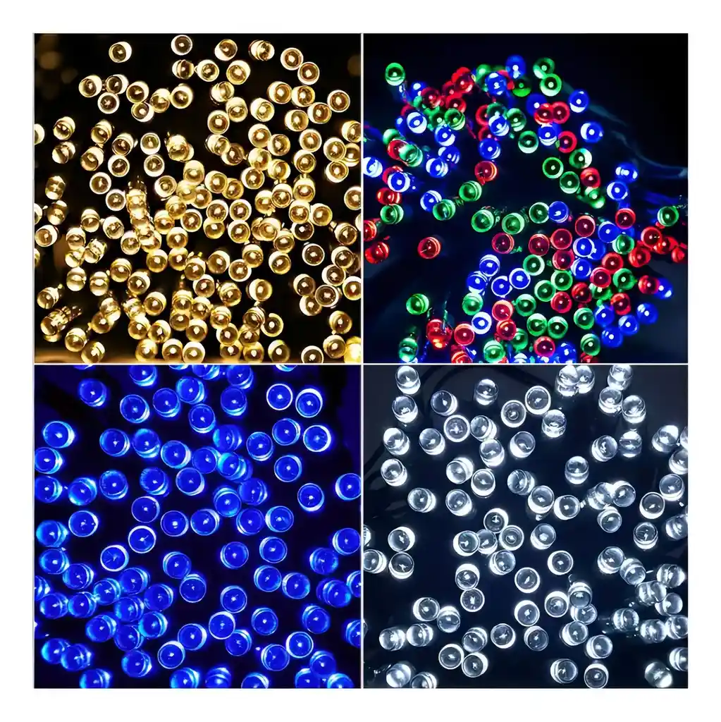 Luces Solares Navidad Guirnalda 10 Metros 100 Led Colores - Brillantes como las LED que se conectan a la red eléctrica. - Sencillas y rápidas de instalar. - Autosuficientes, no necesitan electricidad, se pueden instalar en cualquier lugar. - Más seguras que las que se conectan a la red eléctrica por el bajo voltaje de sus pilas recargables. - Pilas recargables selladas en una caja resistente a la intemperie. - Sin gastos de operación. - Se encienden y apagan automáticamente con un sensor de luz. - Respetuosas con el medio ambiente.